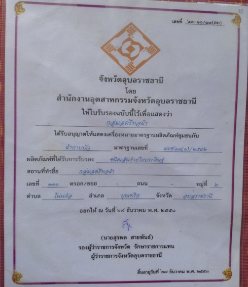 - กลุ่มวิสาหกิจชุมชน รหัสทะเบียน ๔๓๔๑๐๐๖/๑-๐๐๒๒