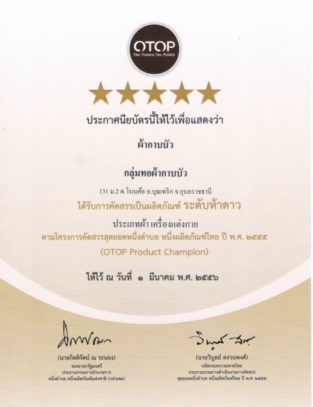 - OTOP คัดสรร ๕ ดาว ปี ๒๕๕๖